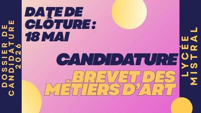 Le dossier de candidature filière BMA est téléchargeable ! Votre établissement d'origine a jusqu'au 18 mai pour nous le faire parvenir par voie postale ou mail : ce.0300058a@ac-montpellier.fr