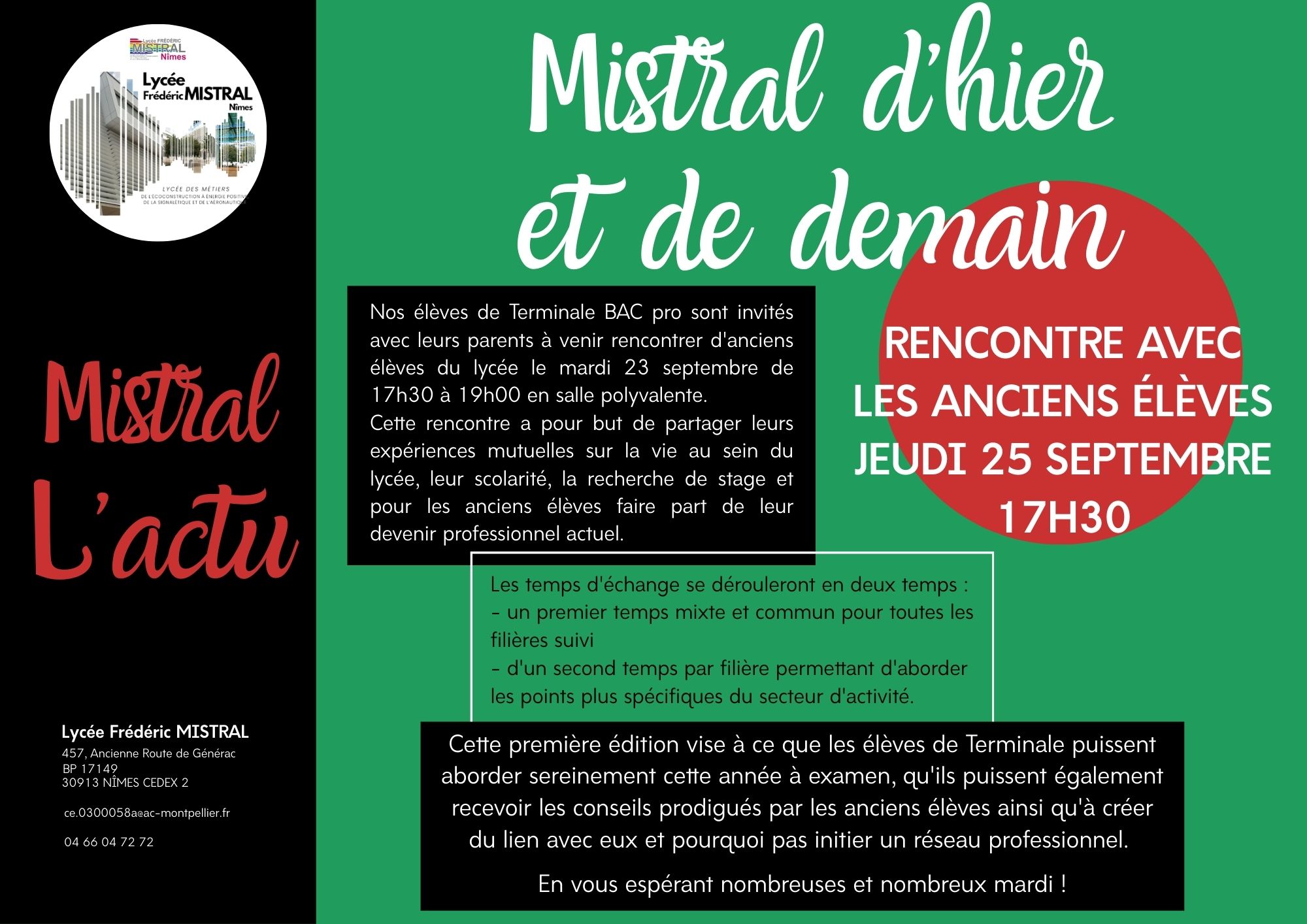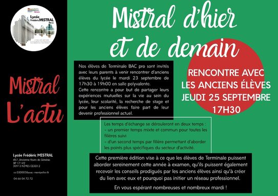 Nos élèves de Terminale BAC pro sont invités avec leurs parents à venir rencontrer d'anciens élèves du lycée le